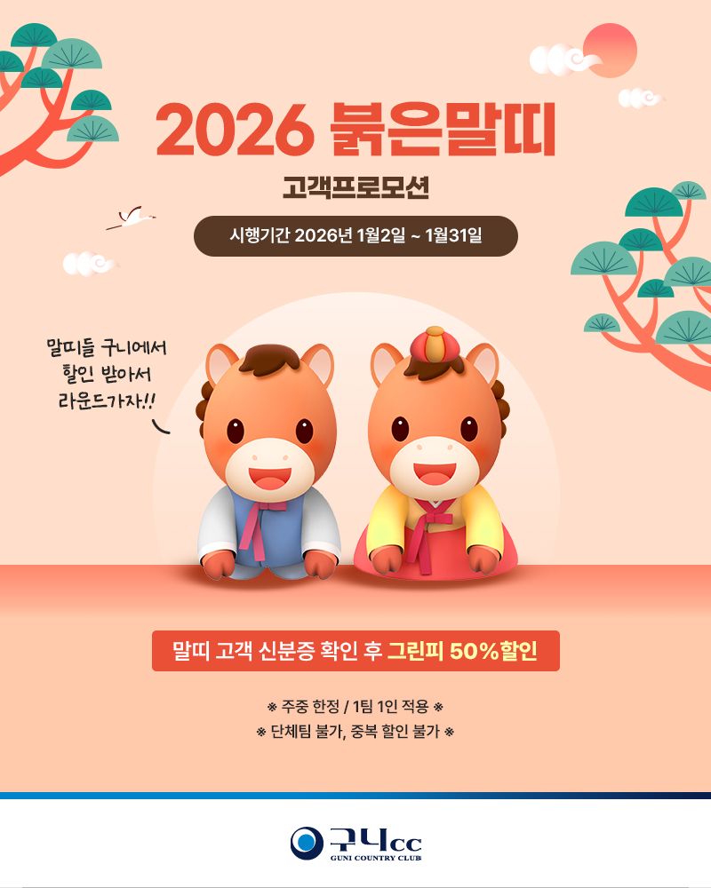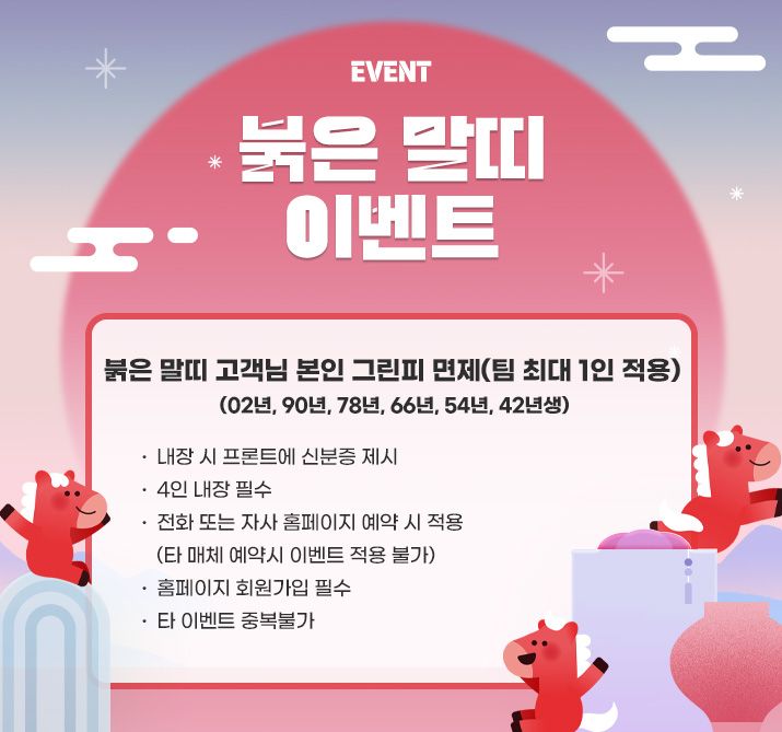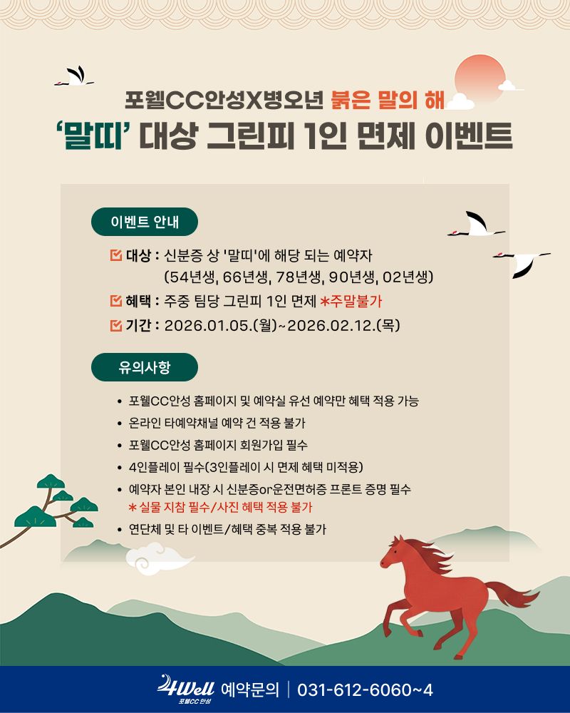 신분증 상 '말띠' 예약자가 포함된 팀의 그린피 1인 면제됩니다!(주말불가)
